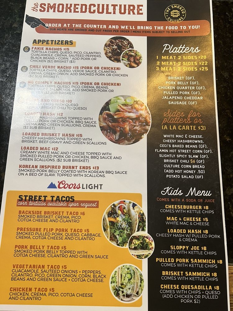 "The Smoked Culture" stands out in the realm of BBQ restaurants with its expanded menu and exceptional service. Customers rave about the perfectly cooked dishes, friendly staff, and inviting ambiance. The brisket, pulled pork, and jalapeño cheddar cheese sausage are must-tries, paired with delicious sides like the hardflip hashbrowns and mar mars green beans. The unique gold sauce and traditional BBQ sauce add an extra layer of flavor to the naked meat options. The attention to detail in the food preparation, from the rub on the brisket to the non-traditional coleslaw, sets this establishment apart. The team's courteous service, despite the self-service model, creates a welcoming and enjoyable dining experience. For a taste of authentic BBQ and a friendly atmosphere, "The Smoked Culture" is a must-visit destination in Sioux Falls.